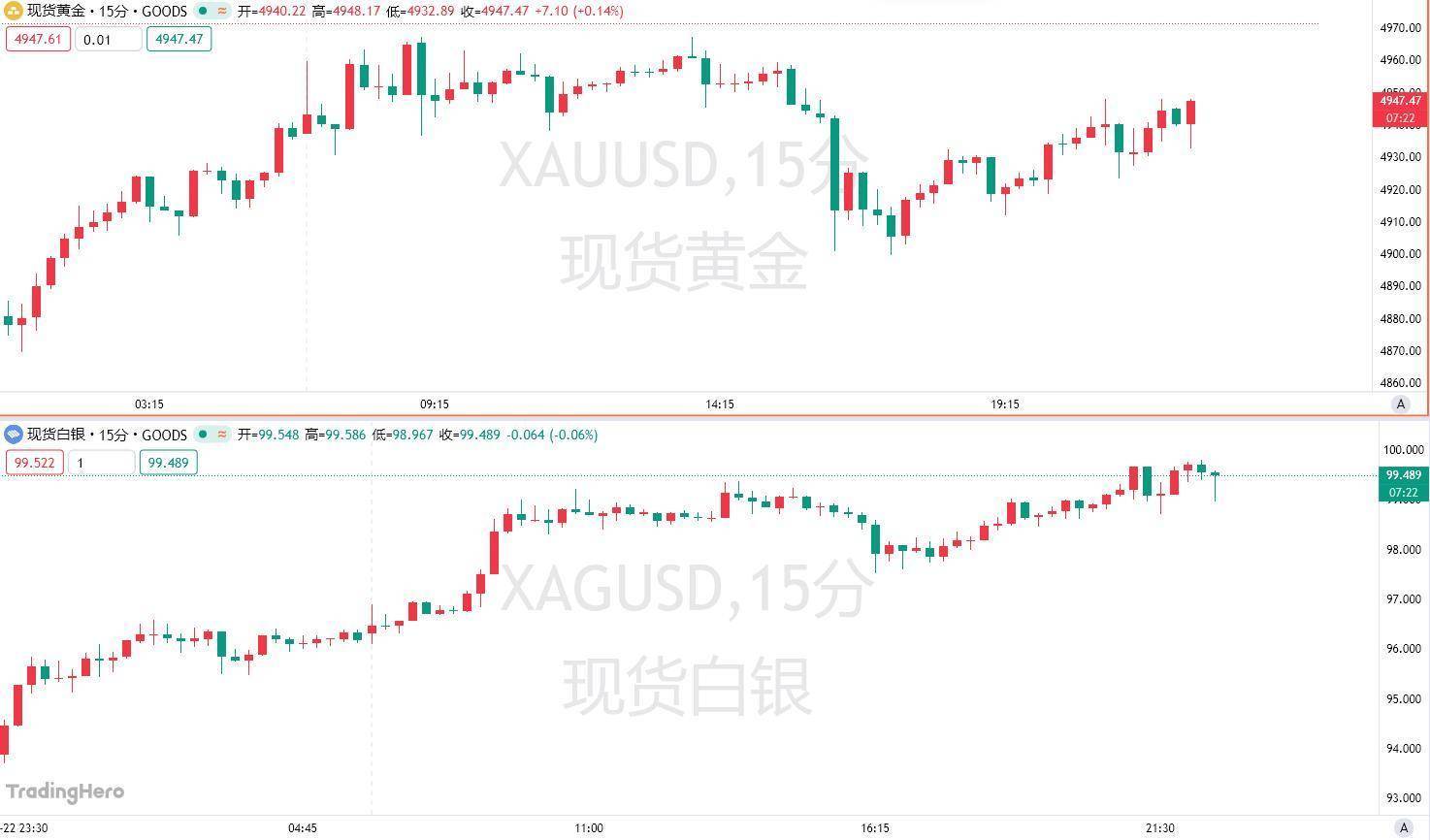 黄金周五波及每盎司近5000好意思元的历史高点,而白银则游荡在略低于每盎司100好意思元的历史高点。