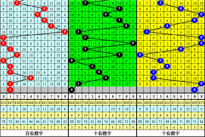 号码012路比为9:5:7,本期瞻望该位开出偶数,参考号码0。