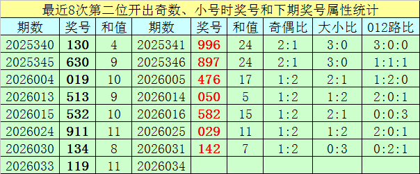 在其下期开奖中,永诀开出号码:996、897、476、050、582、029、142,其中号码奇偶总比例为9:12,奇偶号码走势格外;